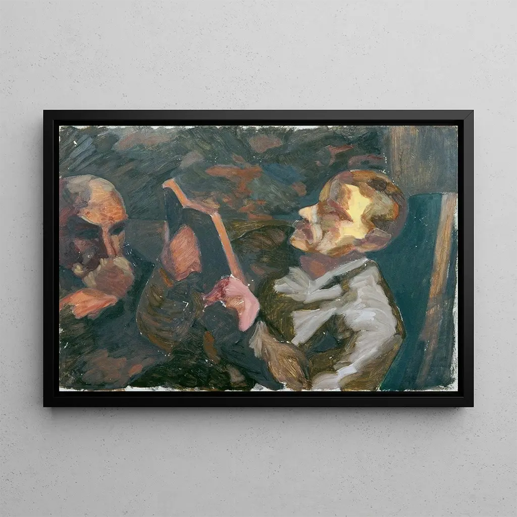"Vieil Homme Lisant" de Walther Gamerith est une œuvre qui évoque la profondeur de la sagesse et la tranquillité de l'esprit. La scène dépeint un homme âgé, absorbé par sa lecture, plongé dans un monde de connaissances et de réflexions. Les couleurs terreuses et les ombres délicates créent une atmosphère apaisante, tandis que la lumière douce met en valeur les traits du visage du personnage. La composition, centrée sur l'homme et son livre, invite à la contemplation et à la méditation, rappelant l'importance de la lecture dans la quête de la sagesse.