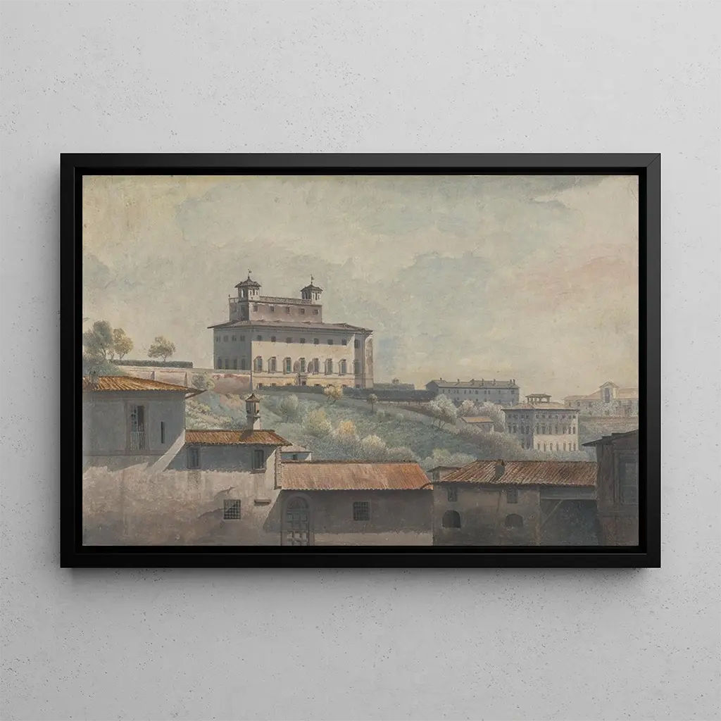 La reproduction "Villa Médicis Rome" de Thomas Jones nous plonge dans l'élégance intemporelle de cette institution emblématique. La toile dépeint avec finesse les lignes harmonieuses et les détails raffinés de la villa, entourée d'un jardin luxuriant. Les couleurs chaudes et lumineuses évoquent la lumière romaine, tandis que la technique de Jones, mêlant aquarelle et huile, confère une atmosphère délicate et rêveuse à l'ensemble. Cette œuvre invite à la contemplation, révélant la beauté architecturale et naturelle qui caractérise ce lieu chargé d'histoire.