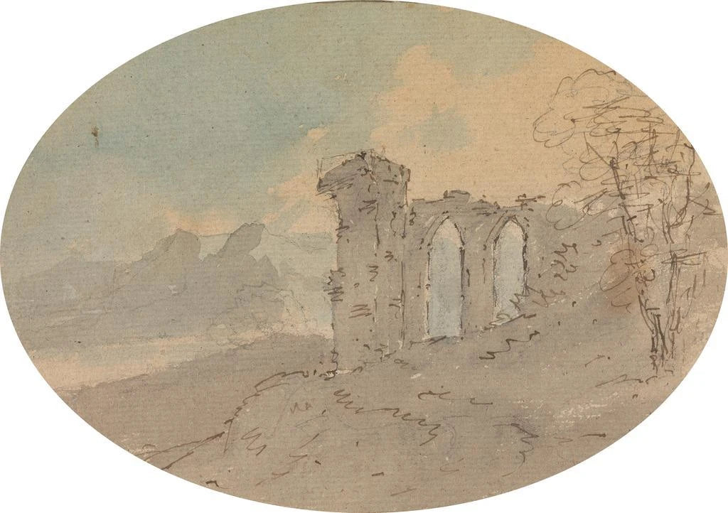 "Vue de la ruine du château" de William Gilpin transporte le spectateur dans un paysage romantique où la nature reprend ses droits sur les vestiges d'une architecture majestueuse. Cette toile évoque une atmosphère mélancolique, où les couleurs douces et les nuances de vert et de brun se mêlent pour créer une harmonie visuelle. La technique de Gilpin, caractérisée par des coups de pinceau délicats et une attention minutieuse aux détails, permet de ressentir l'histoire et la beauté des lieux. Chaque élément, du ciel nuageux aux ruines imposantes, raconte une histoire de grandeur passée et de beauté intemporelle.
