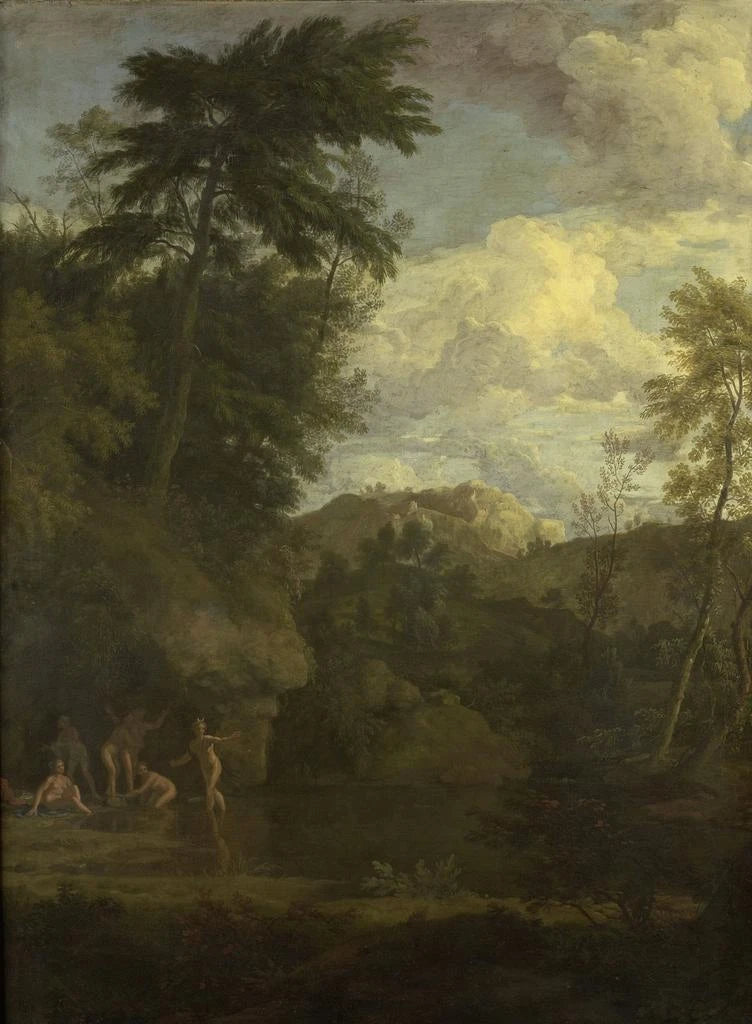 Arcadiskt landskap med Diana i badet - Johannes Glauber