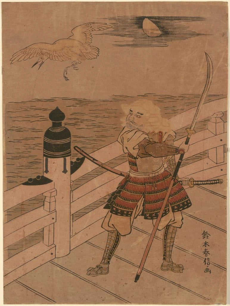 Benkei et Héron sur le pont - Suzuki Harunobu