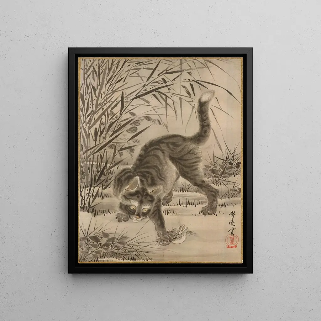 Chat som fångar en groda - Kawanabe Kyōsai