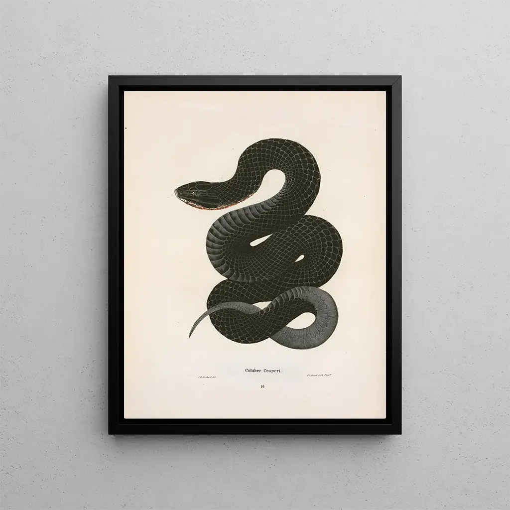 Upptäck den eleganta reproduktionen av Coluber couperi av John Edwards Holbrook, perfekt för att förhöja ditt hem eller kontor. Denna konstnärliga affisch fångar den unika skönheten hos denna ormart, noggrant reproducerad för att behålla varje detalj och färgnyans.