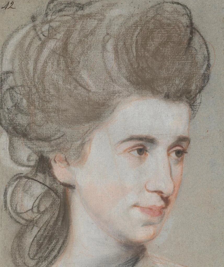 Denna vackra konstnärliga reproduktion av John Russell föreställer en elegant damhuvud. Perfekt för att förhöja din inredning eller som en sofistikerad present.
