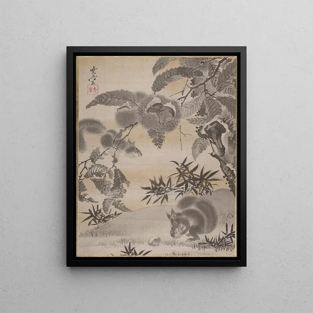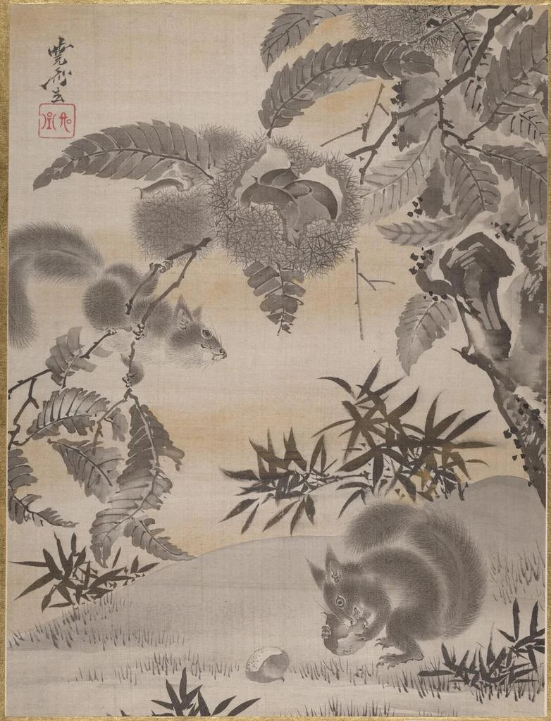 Ekorrar som samlar kastanjer - Kawanabe Kyōsai