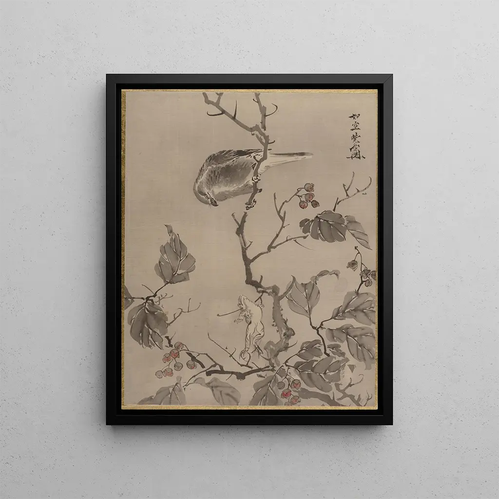 Upptäck detta fantastiska konsttryck av Kawanabe Kyōsai, som föreställer en fågel och groda. Perfekt för konstälskare och samlare som vill förvandla sitt hem eller kontor med en unik och elegant dekoration.