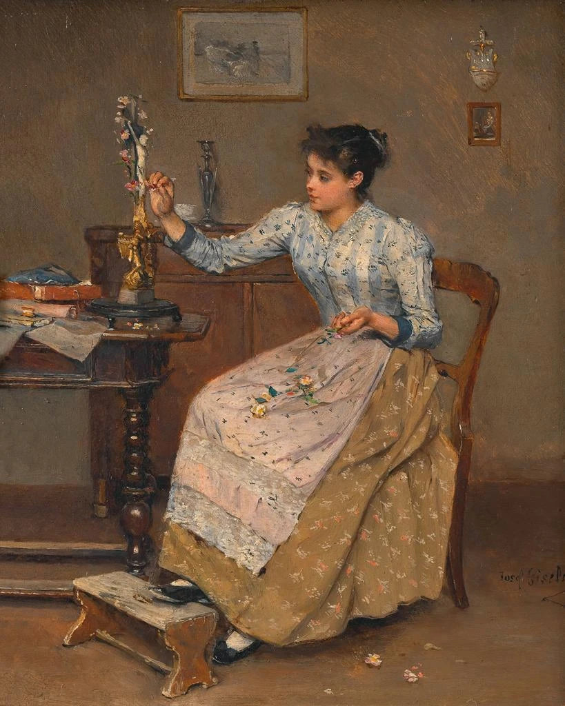Flicka som dekorerar en korsfästelse med blommor - Josef Gisela