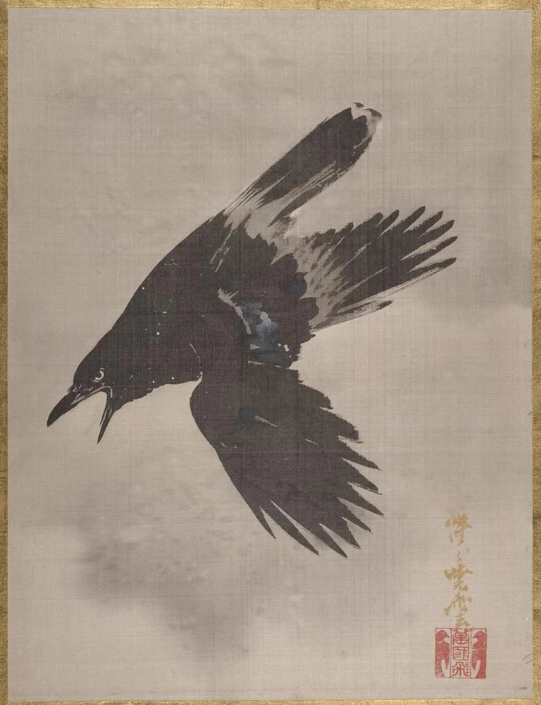 Fladdrande korp i snön - Kawanabe Kyōsai