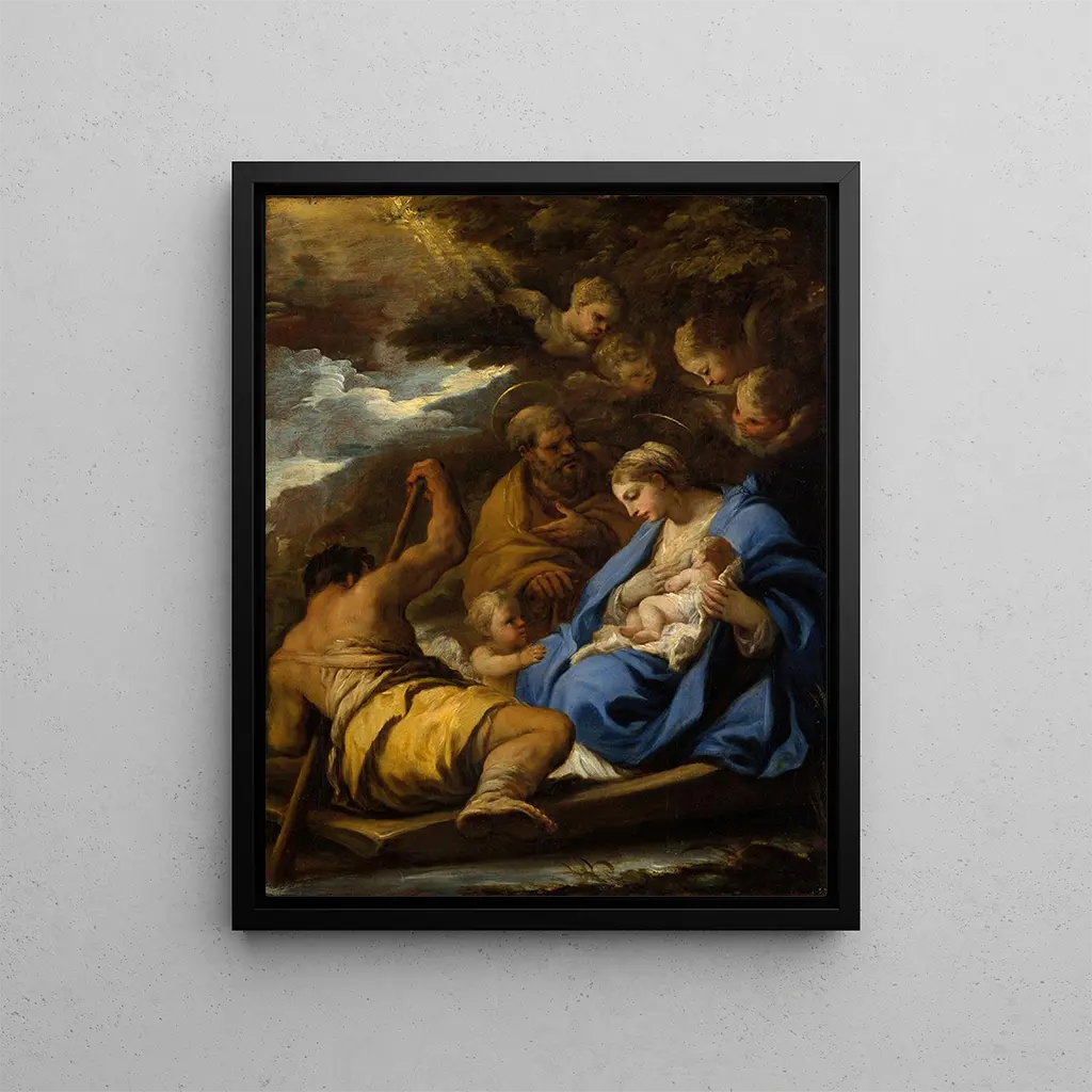 Reproduktion av La Fuite en Égypte av Luca Giordano. Denna konstnärliga reproduktion är perfekt för att dekorera ditt hem eller kontor med en klassisk och elegant konstnärlig touch. Målningen skildrar den bibliska berättelsen om flykten till Egypten och är ett utmärkt val för konstälskare och samlare.