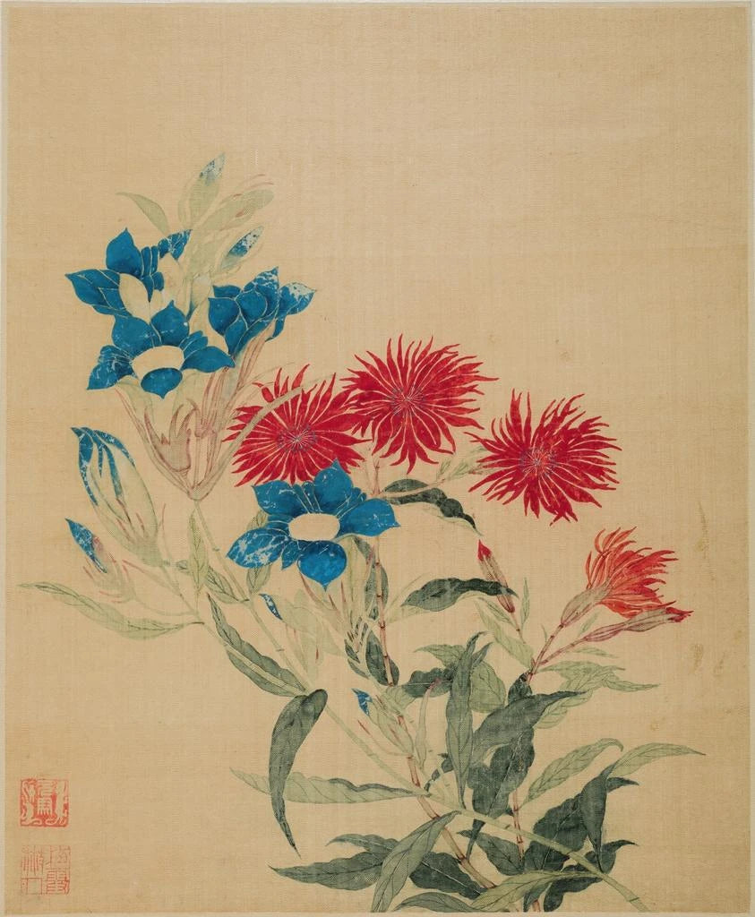 Gentiana bleue och lychnis röd - Ma Yuanyu