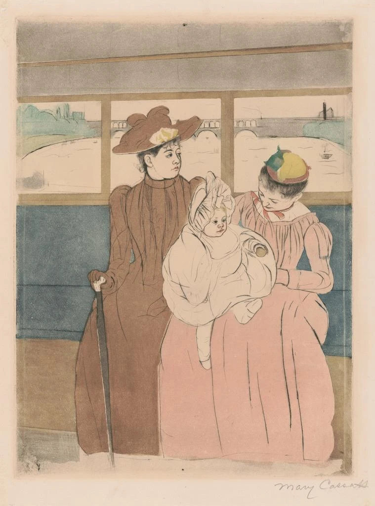 Mary Cassatt, född 1844, är en av de mest inflytelserika konstnärerna i sin tid, särskilt för sin skildring av kvinnors liv. Bosatt i Paris, lyckades hon etablera sig i en konstnärlig miljö dominerad av män, genom att erbjuda en unik blick på moderskap och vardagsliv. Hennes möten med konstnärer som Degas berikade hennes stil, som blandar realism och impressionism. Cassatt spelade också en nyckelroll i att främja impressionistisk konst i USA, vilket bidrog till utvecklingen av modern konst. Hennes konstverk "I omnibus" vittnar om hennes talang att fånga livets ögonblick med en anmärkningsvärt känslig blick.