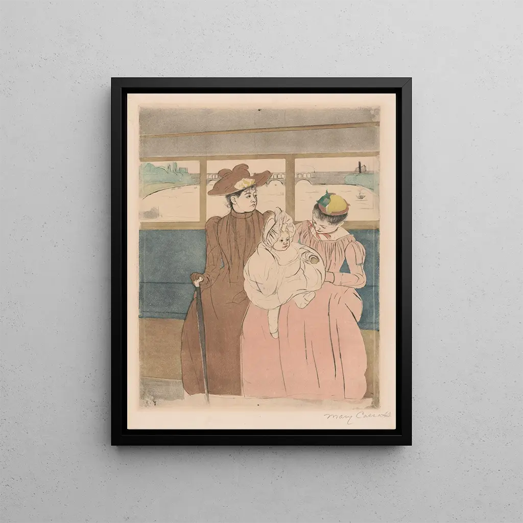 "Dans l'omnibus" av Mary Cassatt är ett konsttryck som perfekt illustrerar vardagslivet i slutet av 1800-talet. Denna dynamiska scen, där passagerare möts i ett offentligt fordon, utstrålar en atmosfär av rörelse och mänsklig interaktion. De livfulla färgerna och ljusspel skapar en känsla av omedelbarhet, medan Cassatts impressionistiska teknik fångar den flyktiga essensen av detta ögonblick. Kompositionen, med sina figurer i nära anslutning, bjuder in betraktaren att observera relationerna och känslorna som framträder ur denna vardagliga situation, förvandlad till ett vibrerande konstverk.
