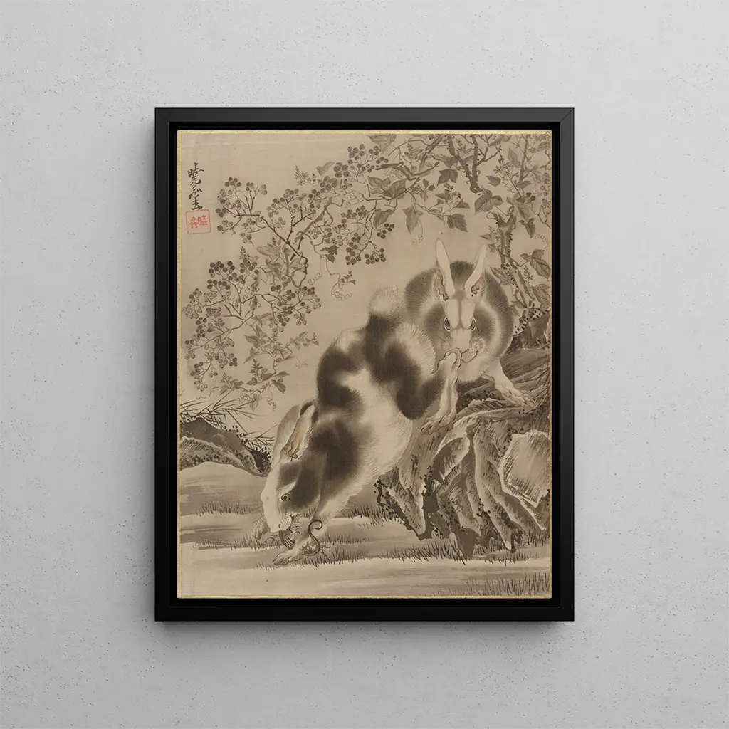 Upptäck denna fantastiska konstnärliga reproduktion av Lapins av den berömda japanska konstnären Kawanabe Kyōsai. Denna högkvalitativa konsttryck är perfekt för att förvandla ditt hem eller kontor till ett konstgalleri. Med sin detaljrikedom och levande färger är detta en utmärkt present till konstälskare och samlare.