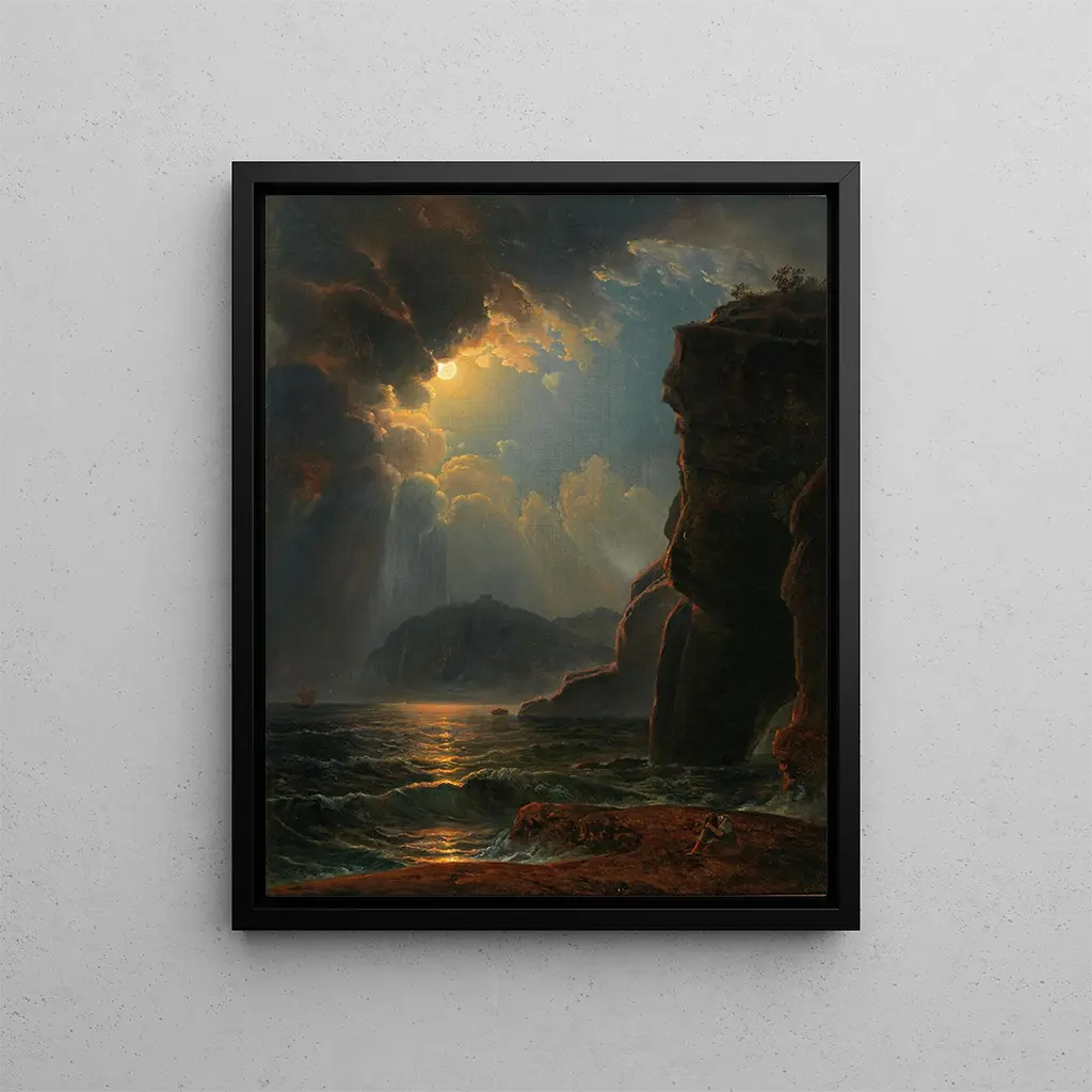 Klippig kust i månljus - Johann Nepomuk Schadlberger