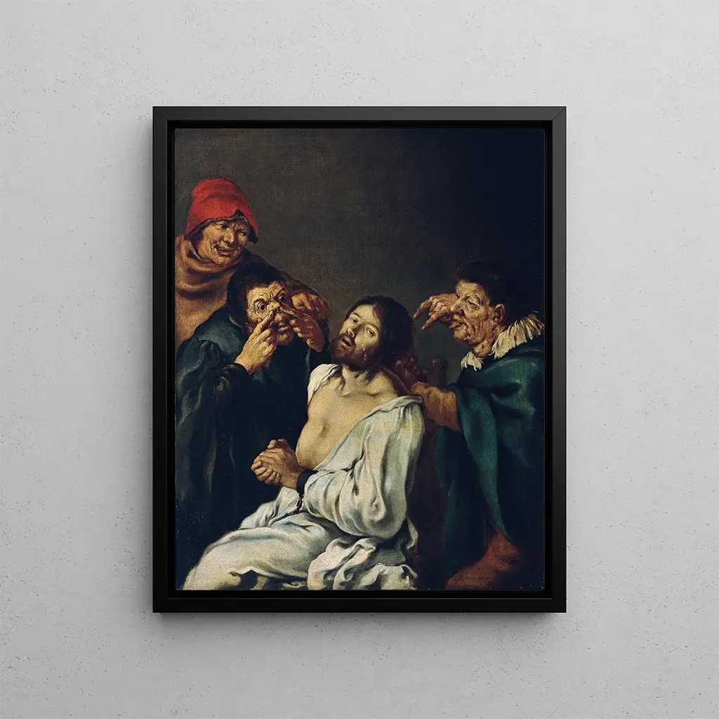 Upptäck detta fantastiska konstverk, en reproduktion av Moquerie du Christ av den mästerliga konstnären Karel Škréta. Denna konstnärliga kopia är perfekt för att förhöja din inredning och ge ett sofistikerat konstnärligt uttryck till ditt hem eller kontor.