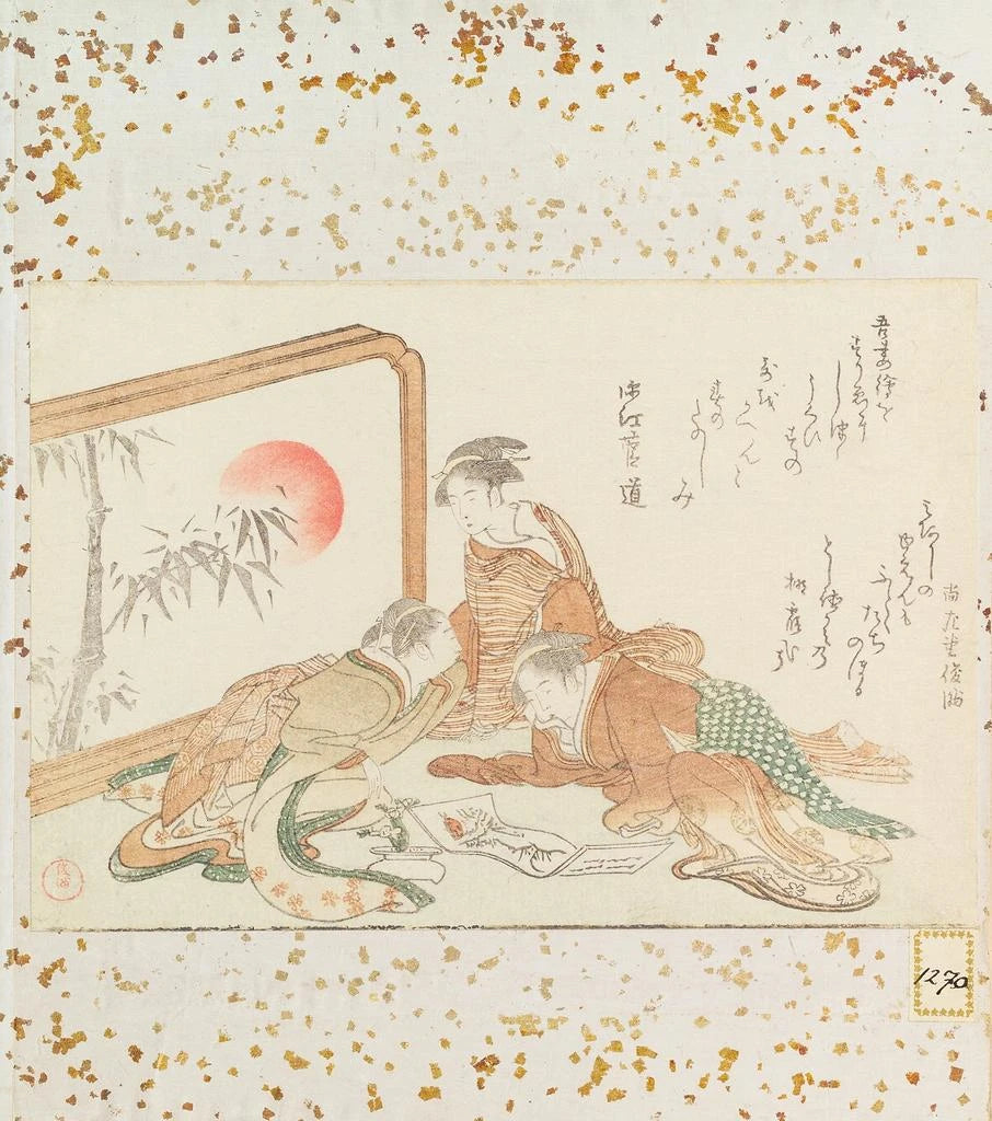 Kvinnor som njuter av en surimono för det nya året - Kubo Shunman