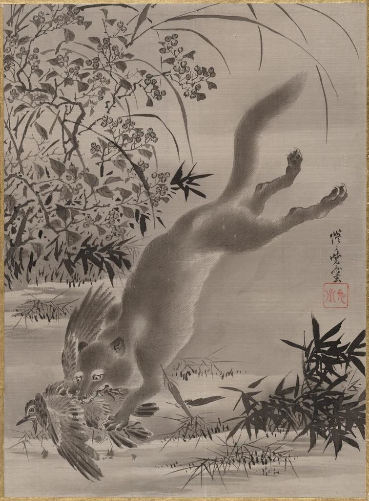 Rävs som fångar en fågel - Kawanabe Kyōsai
