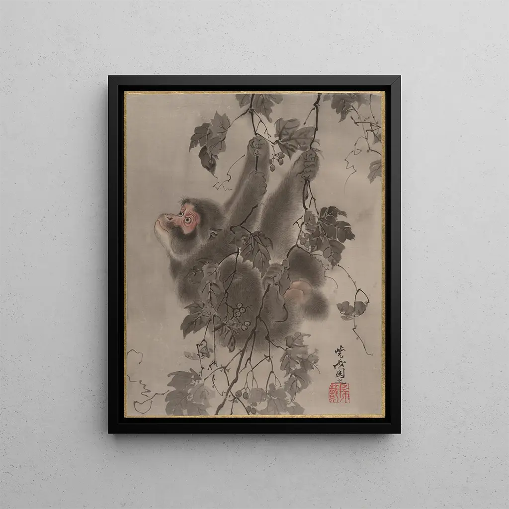 Hängande apa i vinrankor - Kawanabe Kyōsai