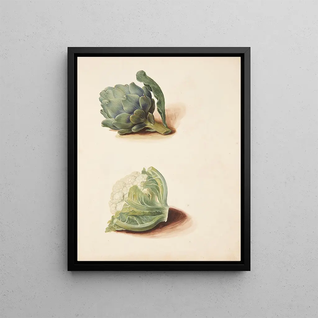Studie av konstgjord artiskock- och blomkålshuvud - Johanna Fosie