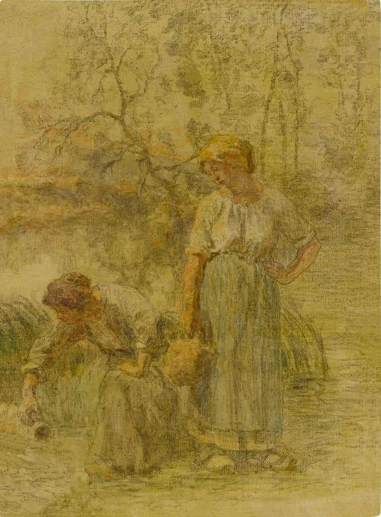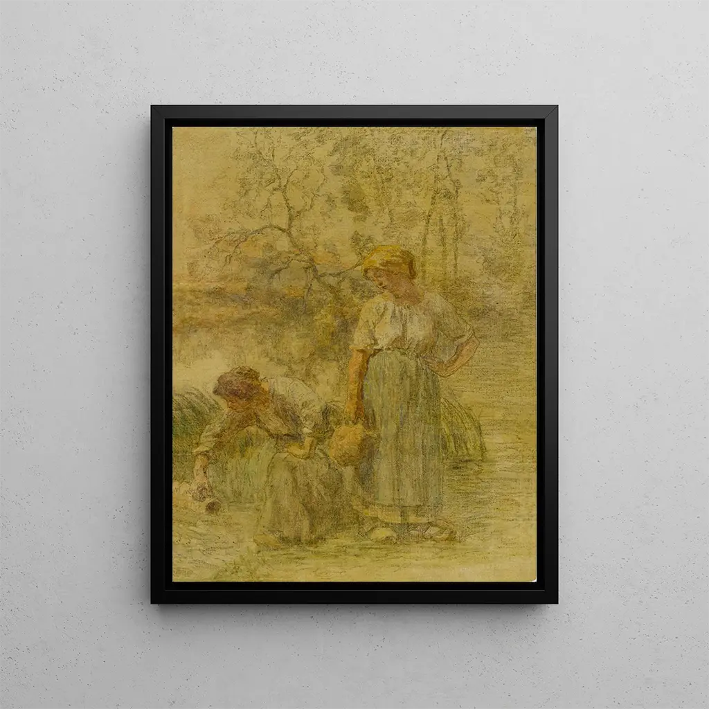 Ce magnifique art print représente deux paysannes dans un paysage rural, capturant la simplicité et la beauté de la vie à la campagne. Parfait pour ajouter une touche de charme champêtre à votre décoration intérieure.
