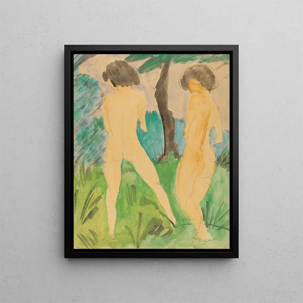 Två kvinnliga nuddar i ett landskap - Otto Mueller