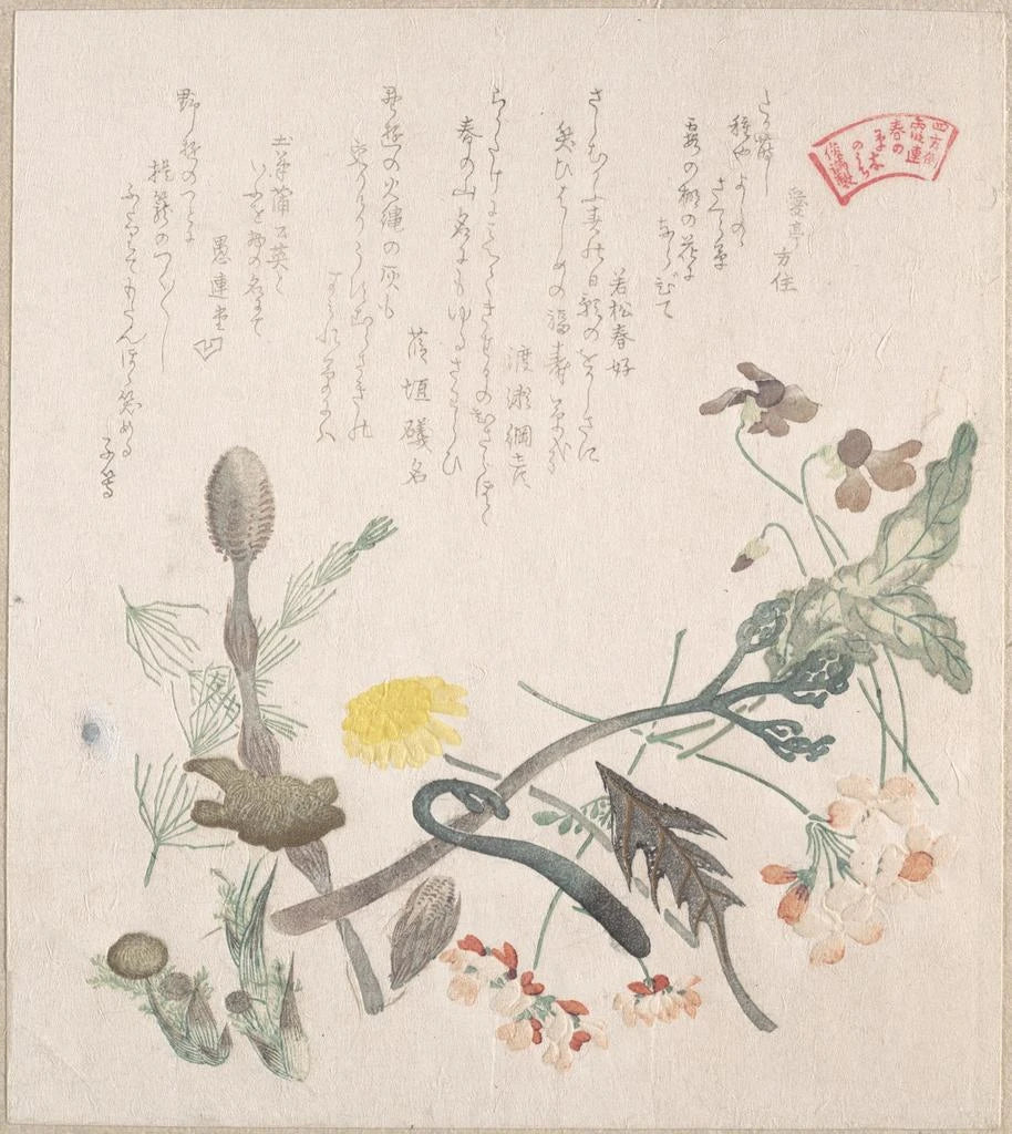 Violetter, påskliljor och andra vårblommor - Kubo Shunman