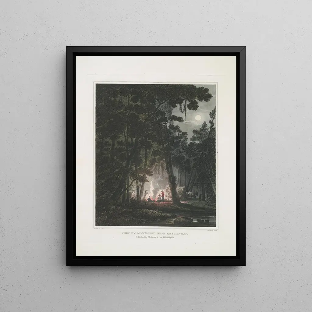 Vacker konsttryck av "Vue au clair de lune près de Fayetteville" av Joshua Shaw, perfekt för att dekorera ditt hem eller kontor. Denna högkvalitativa reproduktion fångar den magiska atmosfären i natten och tillför en konstnärlig touch till vilken vägg som helst. Finns i olika storlekar för att passa ditt utrymme. Beställ nu och förvandla ditt rum med denna fantastiska konstnärliga skapelse.