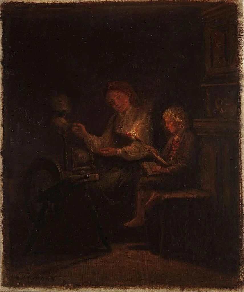 Konsttryck | Vid spinnrocken - Adolph Tidemand