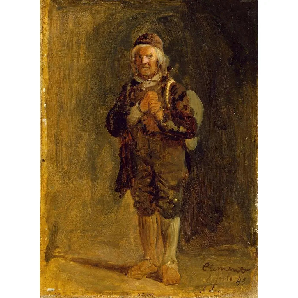 I konsttrycket av "Clement Ringnes de Sigdal" fördjupar sig Adolph Tidemand i en idyllisk scen, där den norska naturen avslöjar sin fulla prakt. De mjuka och naturliga färgerna, från lugnande grönt till varmbrunt, skapar en atmosfär av stillhet. Tidemand's teknik, kännetecknad av noggrann realism, gör det möjligt att känna livskraften som utstrålar från varje figur. Detaljerna i de traditionella kostymerna och de omgivande landskapen bjuder in till en immersiv reflektion, vilket gör detta konsttryck till ett äkta livsbild.