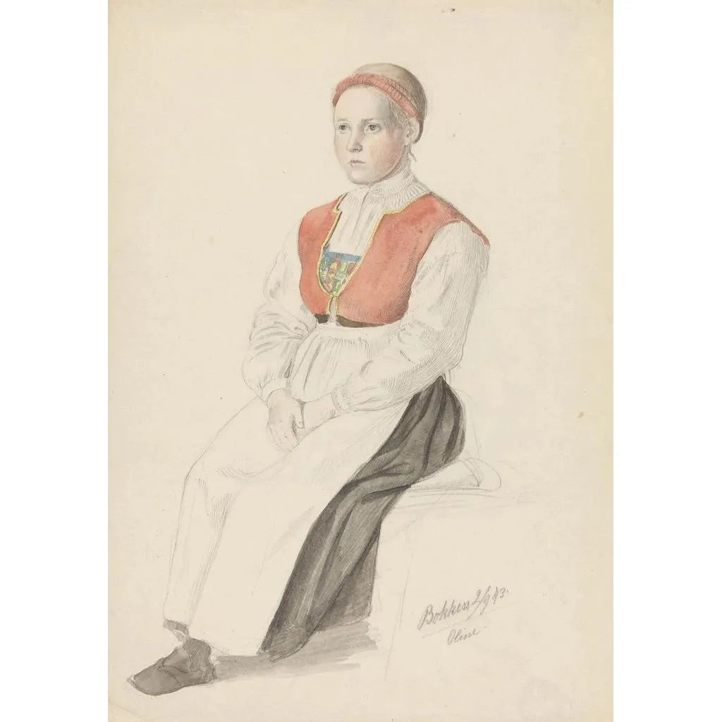 Konsttryck | Fille i kostym Oline Bukken - Adolph Tidemand