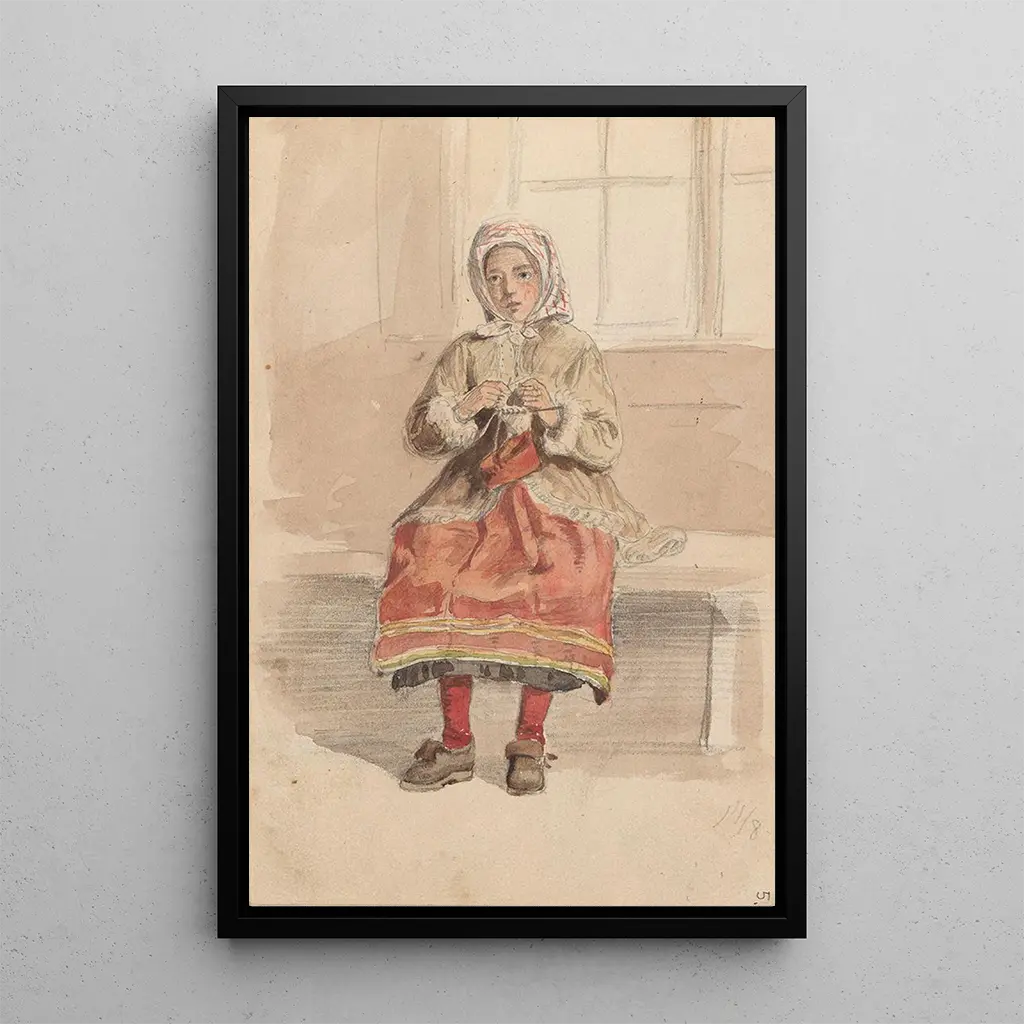 Konsttryck | Ung kvinna som stickar - Adolph Tidemand