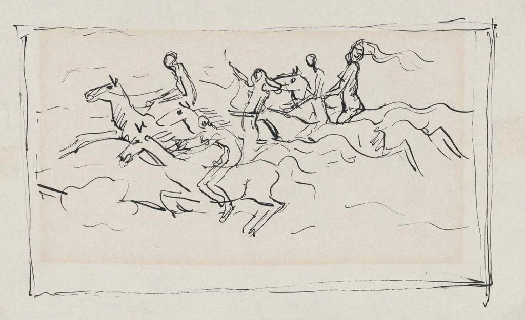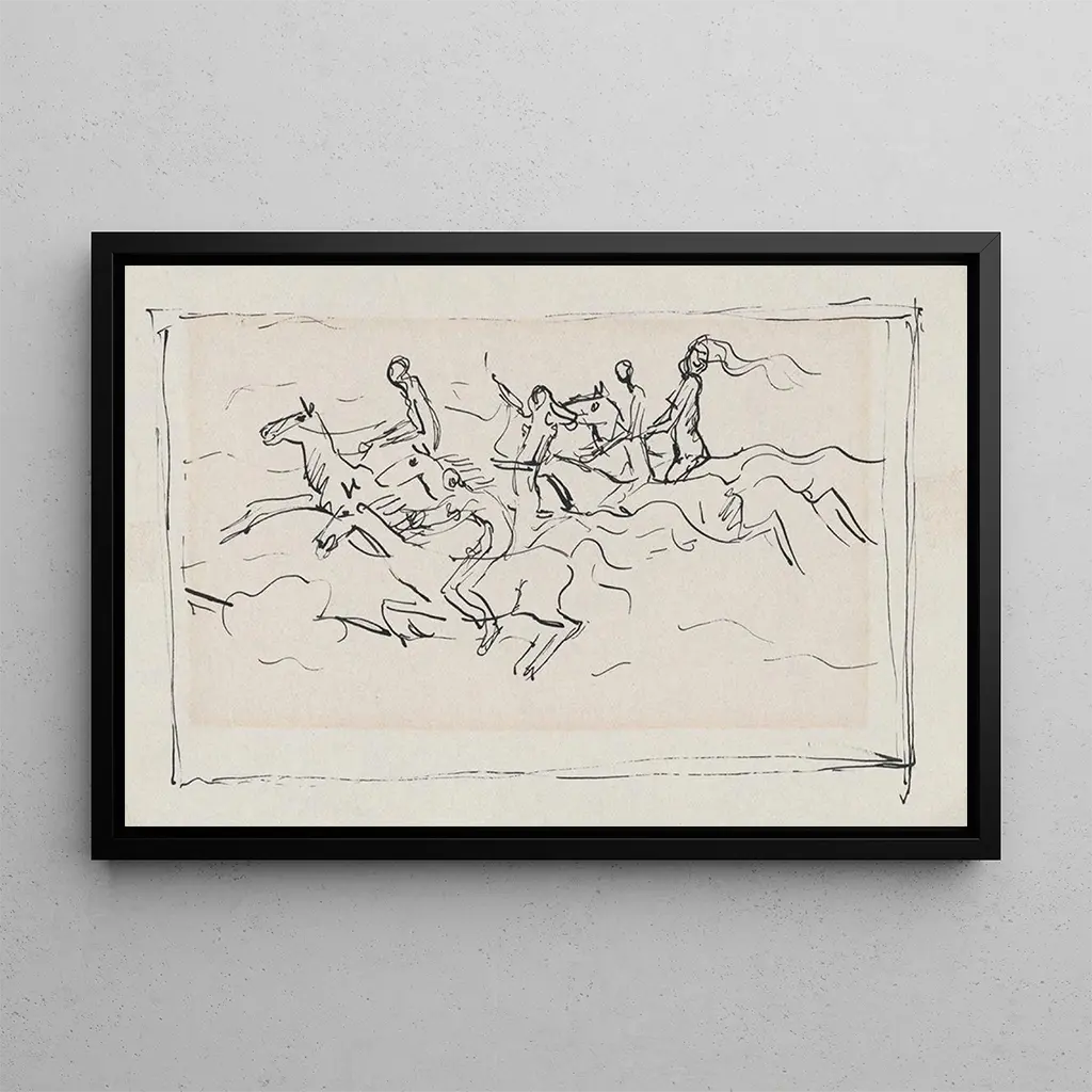 Konsttrycket "Cavaliers" är ett dekorativt föremål som kan berika alla utrymmen, vare sig det är ett vardagsrum, ett kontor eller ett sovrum. Dess utskriftskvalitet garanterar en anmärkningsvärt trogen återgivning av detaljerna i det ursprungliga verket, vilket möjliggör att uppskatta varje nyans av färg och varje rörelse. Genom att integrera detta konsttryck i din inredning tillför du en touch av elegans och äkthet till ditt hem. Dess estetiska tilltal och förmåga att väcka känslor gör det till ett perfekt val för den som vill skapa en varm och inspirerande atmosfär.