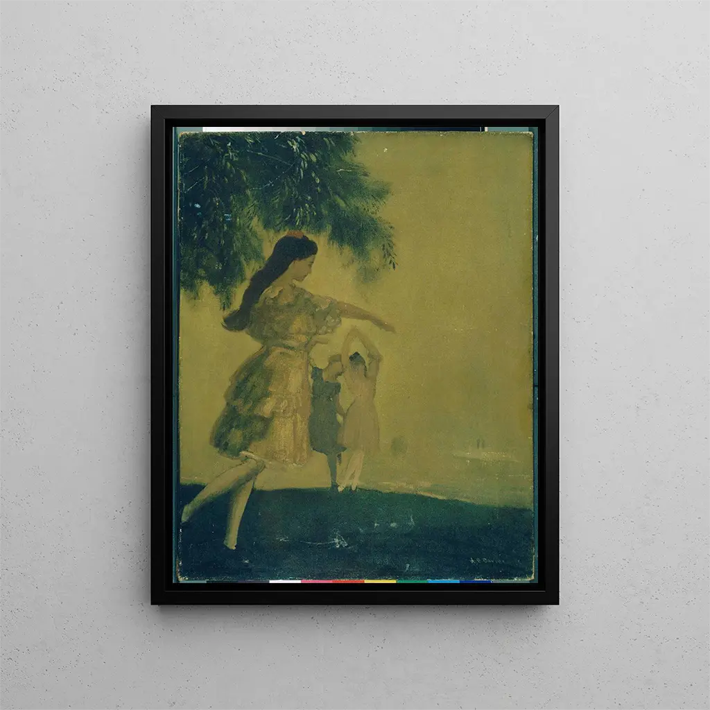 I konstvärlden är vissa verk kapabla att fånga den mänskliga känslans essens. "L Dansare" av Arthur Bowen Davies är utan tvekan ett av dessa verk. Denna målning, fylld av poesi och grace, framkallar en värld där dansen transcenderar enkel rörelse för att bli en verklig hyllning till livet. Figurerna, både eteriska och vibrerande, tycks lyfta sig över marken, som om de är i harmoni med en osynlig musik. Ljuset som badar scenen skapar en nästan magisk atmosfär, inbjuder betraktaren att dyka in i en värld där tiden står stilla och skönheten råder.