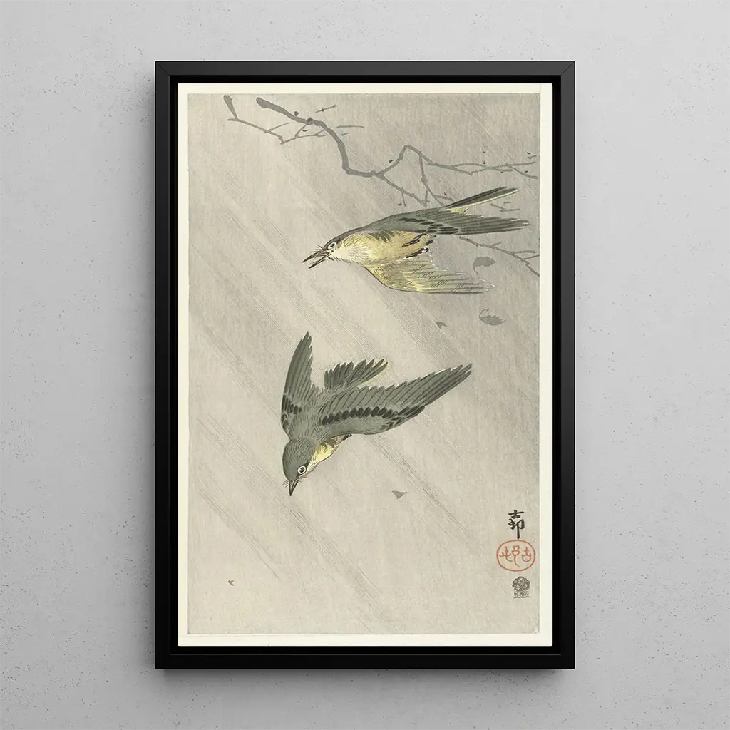Konsttryck | Fåglar som sjunger i regnet - Ohara Koson