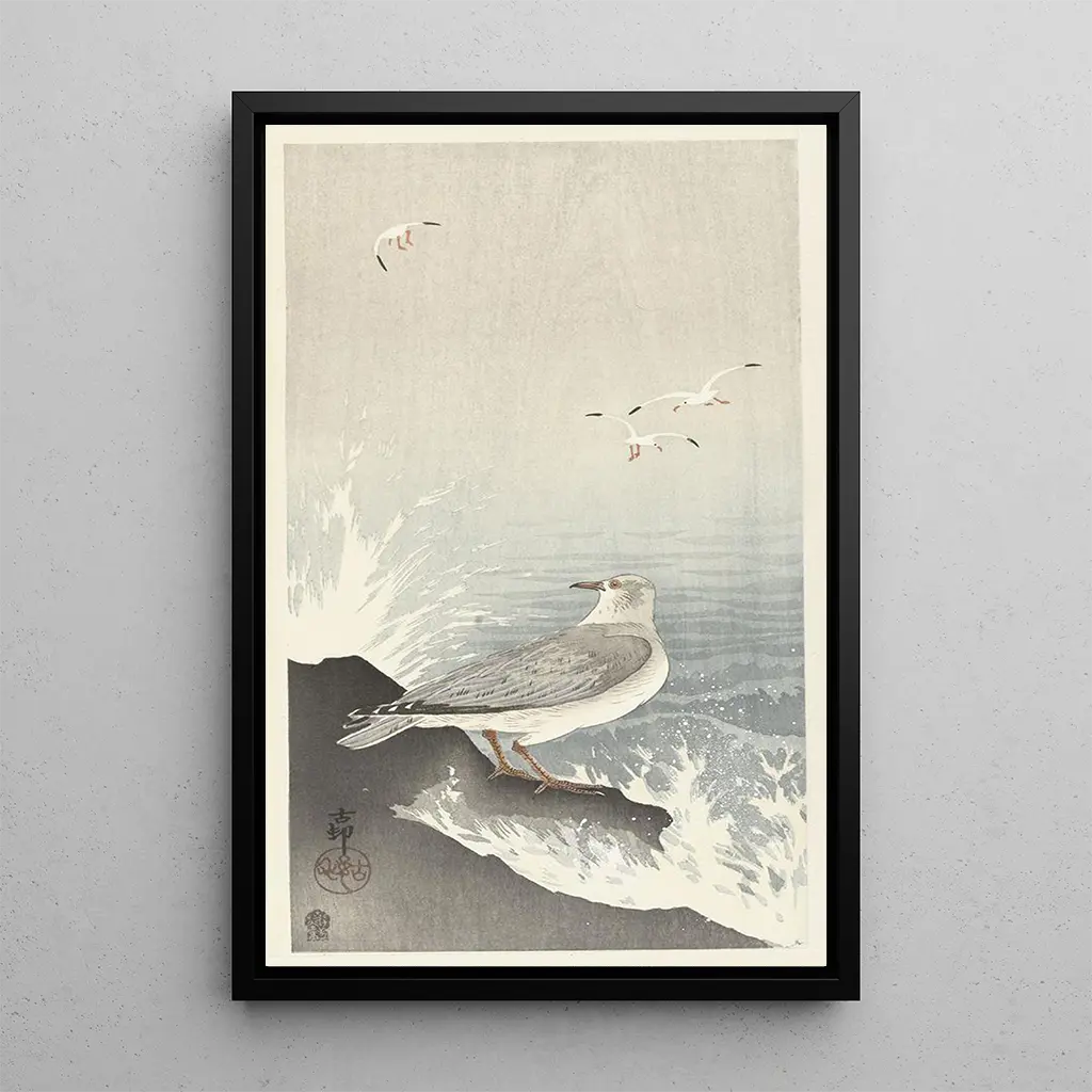 Ohara Koson, verksam under Taisho-perioden i Japan, är känd för sina landskaps- och djur- ukiyo-e. Påverkad av den omgivande naturen och den traditionella japanska kulturen, lyckades han fånga den flyktiga skönheten i vardagliga scener. Koson var en pionjär inom användningen av färg och komposition, och integrerade naturens element i sina verk. Hans skapelser betraktas ofta som vittnesmål om harmonin mellan människa och natur, och "Mouette sur un rocher" är ett utmärkt exempel, som speglar naturens betydelse i japansk konst.