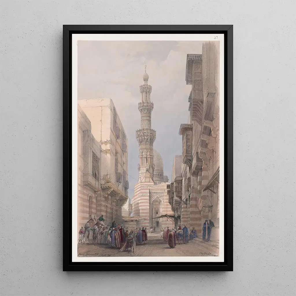 David Roberts, en ikonisk figur inom orientalismen under 1800-talet, lyckades förvandla vardagsscener i Egypten och Mellanöstern till konsttryck. Hans konstnärliga bana präglas av resor som tillät honom att absorbera de kulturer han mötte. Påverkad av romantiken utvecklade han en unik stil, som kombinerar precision och känslighet. "Bullack Le Caire" är ett av hans mest representativa verk, som visar hans talang att fånga inte bara landskap, utan även autentiska livsmoments, vilket gör honom till en pionjär inom framställningen av Orienten.
