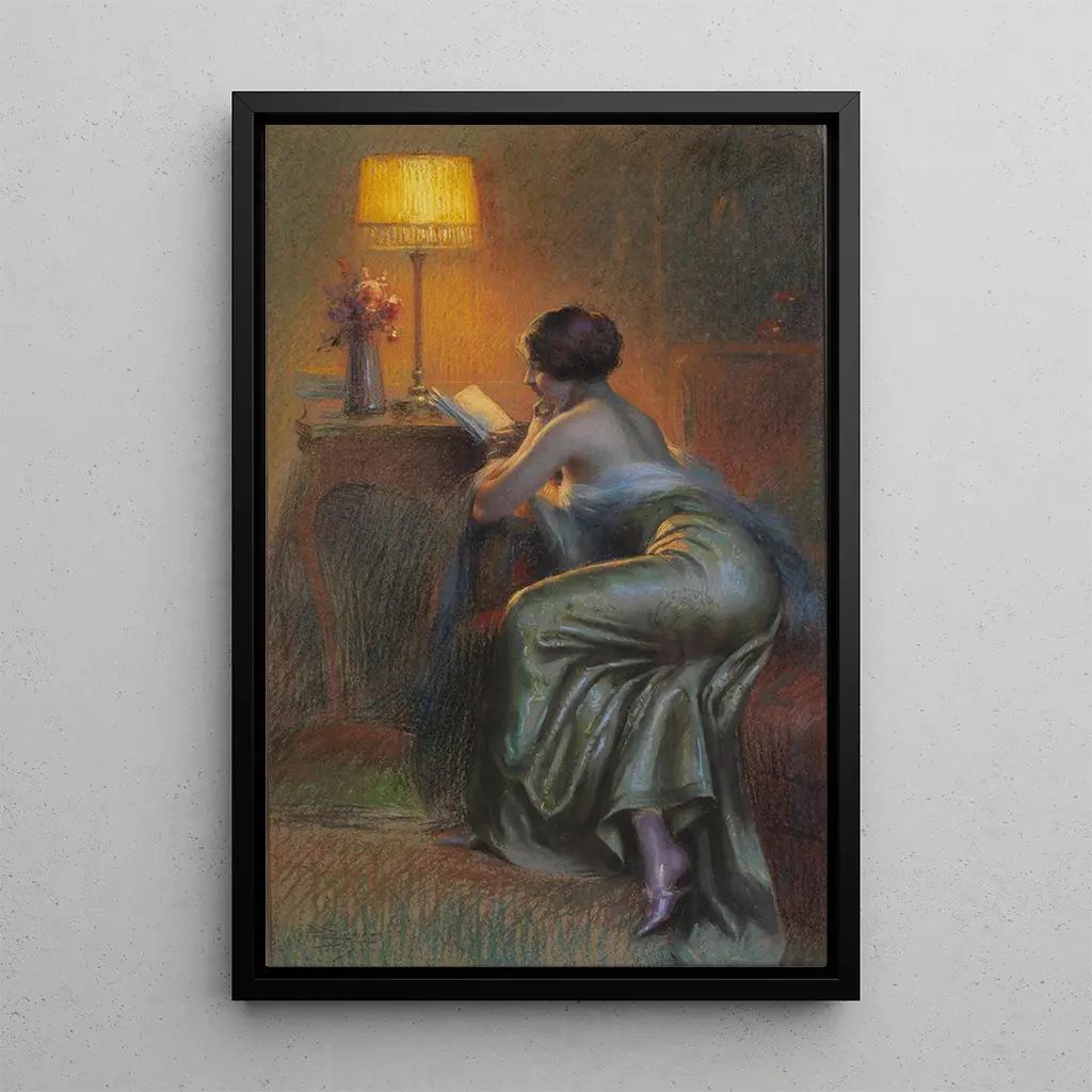 Le tableau Le Roman de Delphin Enjolras nous plonge dans un univers empreint de délicatesse et de poésie. Les couleurs pastel, subtilement nuancées, évoquent une atmosphère douce et rêveuse. La composition, centrée sur une figure féminine élégante, attire le regard et invite à la contemplation. Les détails minutieux, des drapés aux expressions, témoignent d'un savoir-faire exceptionnel. Enjolras parvient à capturer l'essence de l'instant, rendant cette œuvre à la fois intemporelle et vivante, comme si la scène pouvait s'animer à tout moment.