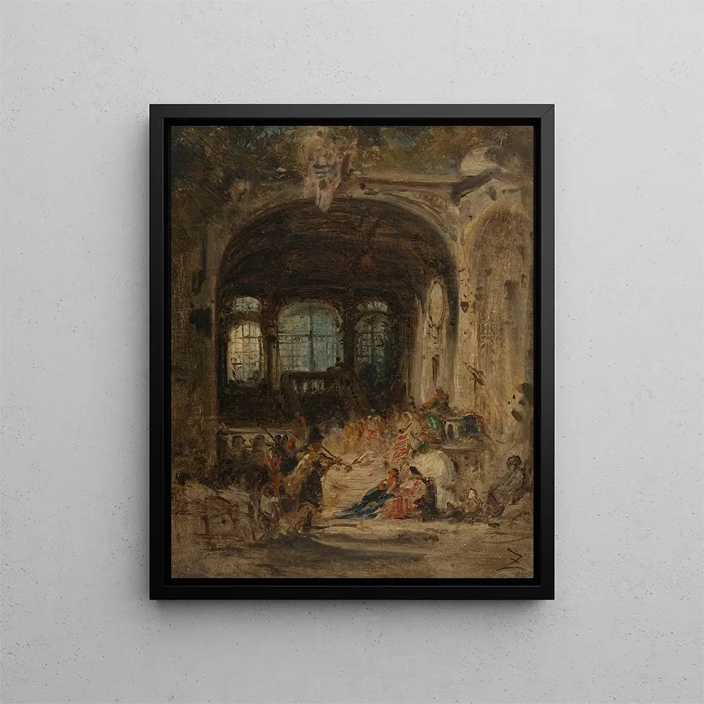 Félix Ziem, en konsttryckare från 1800-talets Frankrike, är känd för sina landskap och marinmåleri, men också för sina genrebilder. I "Fête dans un palais, Naples" förflyttar han oss till ett ögonblick av glädje mitt i aristokratin, där elegans och livsglädje möts. Rikedomarna i färgerna och den livfullhet som karaktärerna visar i verket avslöjar Ziems talang för att skapa vibrerande atmosfärer. Hans impressionistiska tillvägagångssätt gör det inte bara möjligt att se, utan också att känna energin i scenen. Denna konsttryck, med sin festliga stämning, är perfekt för att tillföra en touch av glädje och kultur till alla moderna utrymmen. Vi inbjuder dig att upptäcka detta konsttryck på Artem Legrand.