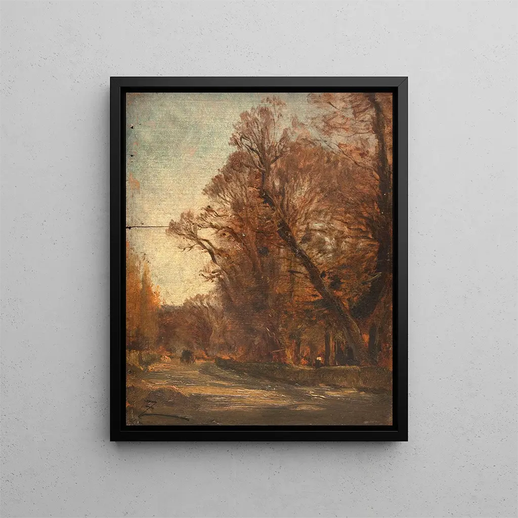 Félix Ziem, mästare på landskap, lyckas fånga själva essensen av naturen med en sällsynt ömhet. I "L vägen" är betraktaren nedsänkt i en värld där ljuset spelar en framträdande roll, och lyser upp nyanserna av träd, himlar och vägar. Färgvalet, från djupa gröna till lugnande blå nyanser, skapar en visuell harmoni som drar till sig ögat och lugnar själen. Kompositionen är skickligt orkestrerad, och blandar naturliga element med perspektiv för att erbjuda en slående djupkänsla. Ziem, en sann alkemist, förvandlar duken till ett öppet fönster mot ett drömmande landskap, där varje detalj, från lövverket till molnen, tycks pulsera under en lätt bris. Detta konsttryck utmärker sig genom sin förmåga att framkalla känslor, väcka minnen av tidigare promenader eller skapa en önskan om framtida äventyr.