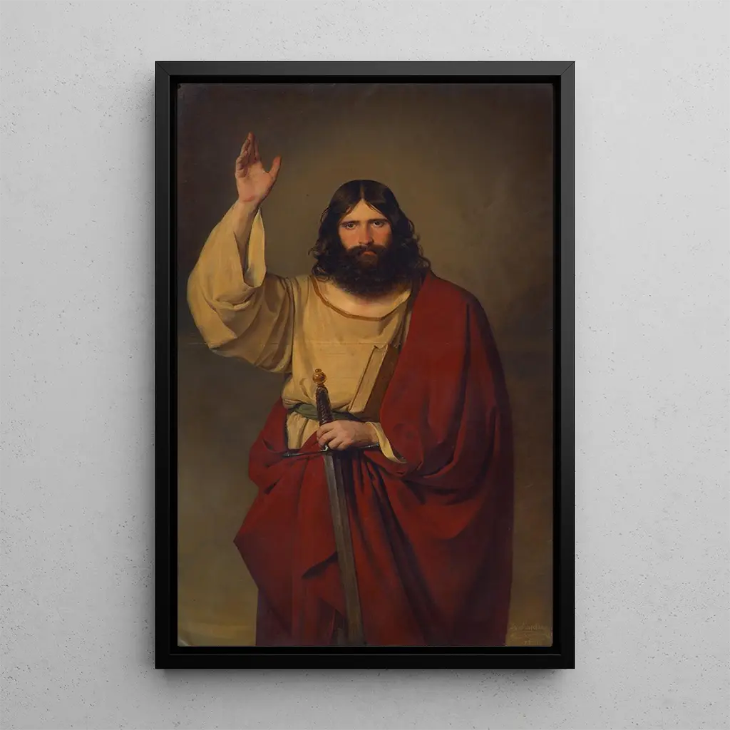 Konsttrycket "Apôte Paulus" av Friedrich von Amerling skildrar en ikonisk figur inom kristendomen med en anmärkningsvärt stark intensitet. Tavlan fångar aposteln i ett ögonblick av eftertanke, hans ansikte präglat av visdom och erfarenhet. De rika färgerna och ljusspel betonar djupet i hans blick, medan draperierna i hans tunika tillför en dynamisk dimension till kompositionen. Amerling, med sin mästerliga porträttkonst, förmedlar själva essensen av spiritualitet och tro, vilket gör detta verk djupt rörande.