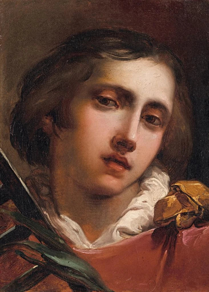 Gaetano Gandolfi, verksam på 1700-talet, är erkänd för sin barockstil som förenar finess och uttrycksfullhet. Utbildad i den italienska mästarnas tradition, lyckades han integrera influenser från den bolognesiska skolan samtidigt som han utvecklade ett personligt tillvägagångssätt. Hans verk, ofta fokuserade på religiösa teman, vittnar om en enastående teknisk skicklighet och en förmåga att förmedla djupa känslor. Gandolfi har lämnat ett varaktigt arv inom helig konst, och hans framställning av Saint Laurent är ett strålande exempel, som fångar själva essensen av den kristna spiritualiteten.