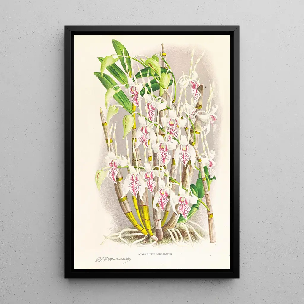 Konsttrycket av Dendrobium stratiotes är ett klokt dekorativt val för att tillföra naturens element till ditt hem. Oavsett om det är i ett vardagsrum, ett kontor eller ett sovrum, kommer denna duk att fängsla uppmärksamheten och skapa en lugn atmosfär. Dess tryckkvalitet garanterar trohet mot färger och detaljer i originalverket, vilket gör detta konsttryck till en verklig estetisk tillgång. Genom att integrera detta konstverk i din inredning väljer du ett verk som kombinerar elegans och kultur, samtidigt som du hyllar skönheten hos exotiska blommor.