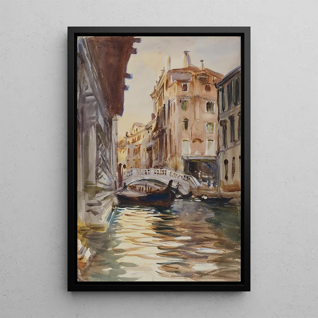 Konsttrycket av Ponte della Canonica av John Singer Sargent tar oss till hjärtat av Venedig, där den majestätiska arkitekturen speglas i de lugna vattnen. De livfulla färgerna och det subtila ljuset skapar en atmosfär som är både lugn och dynamisk. Sargent, mästare av impressionistisk målning, använder flytande penseldrag för att fånga magin i denna scen, där gondolernas rörelse och venetianernas vardagsliv flätas samman. Detta konsttryck väcker en inbjudan att vandra längs kanalerna och njuta av varje ögonblick av flyktig skönhet.