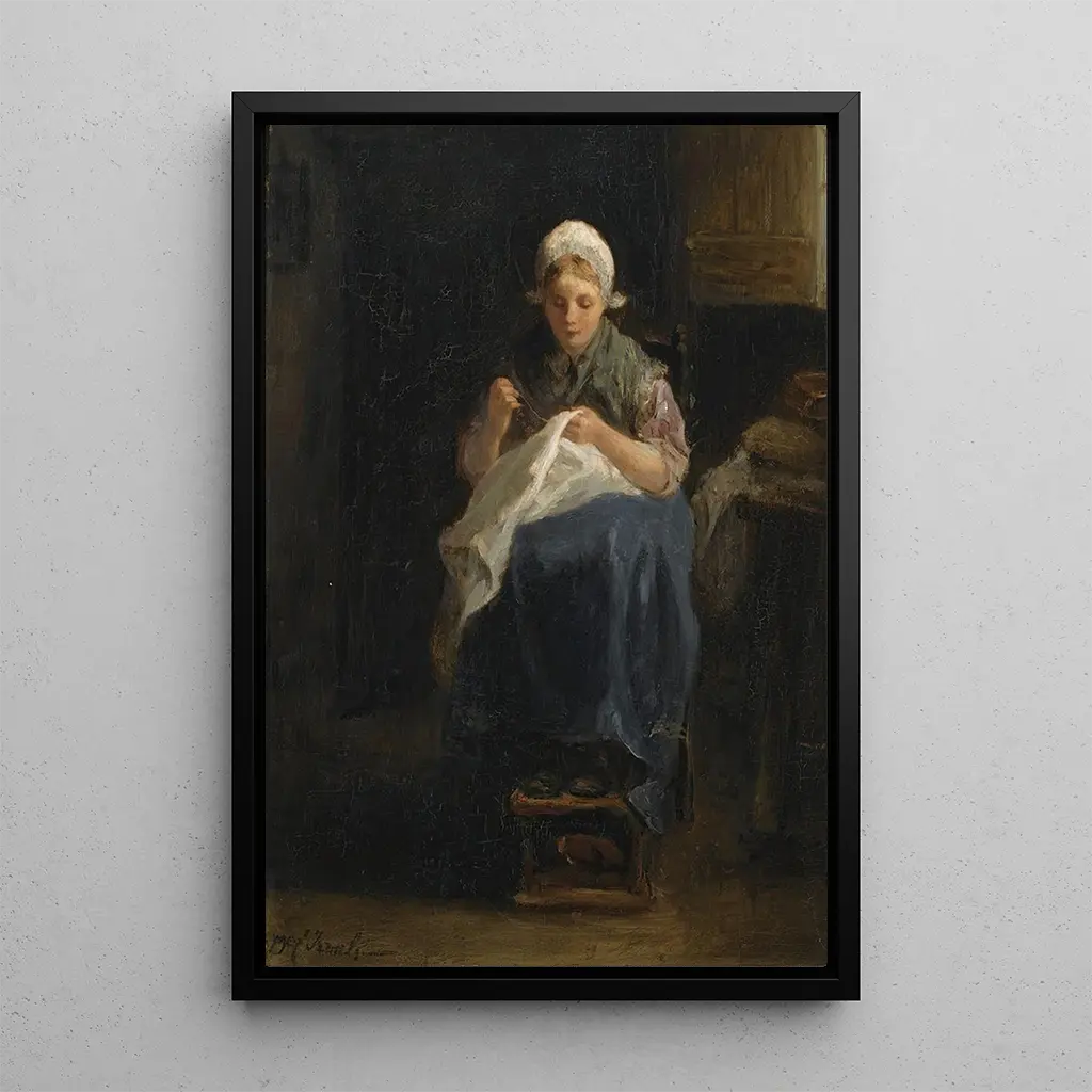 Konsttryck | En bondkvinna som syr - Jozef Israëls