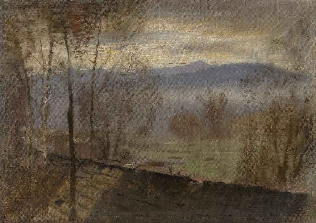 Konsttryck | Landskap vid kvällssolnedgång med en flod - Ladislav Mednyánszky