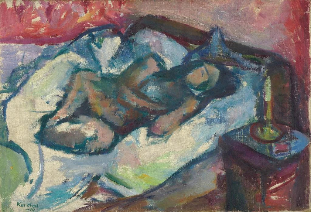 Konsttryck | Ung flicka naken i sängen - Ludvig Karsten