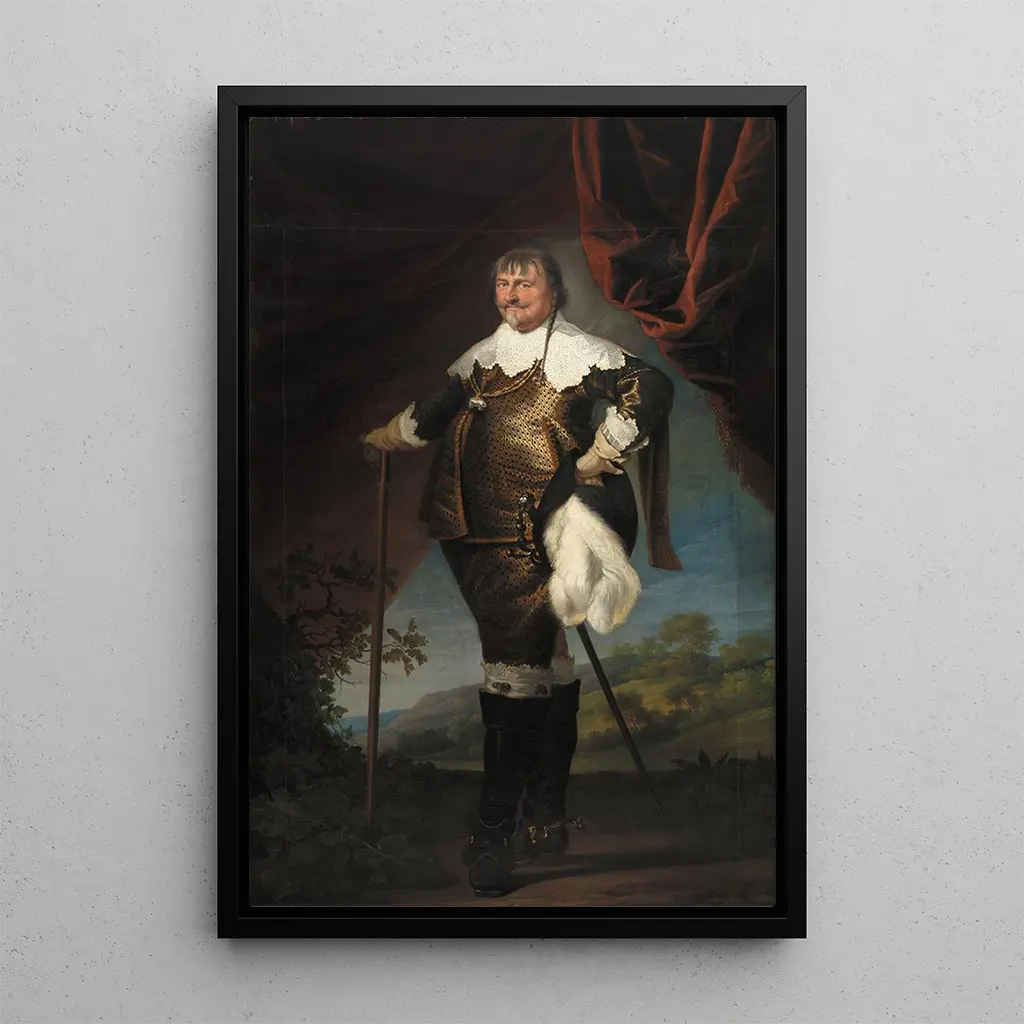Konsttrycket av Christian IV är ett verk som kommer att berika din inredning, oavsett om det är i ett kontor, ett vardagsrum eller ett utställningsrum. Dess utskriftskvalitet och respekt för de ursprungliga detaljerna gör det till ett perfekt val för dem som uppskattar historisk konst. Detta konsttryck ger en touch av sofistikering och elegans till varje utrymme, samtidigt som det väcker intresse och nyfikenhet hos besökare. Genom att integrera detta konsttryck i din inredning skapar du en koppling till historia och kultur, samtidigt som du skapar en kunglig och inspirerande atmosfär.