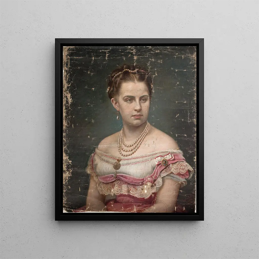 Målningen "Reine Olga de Grèce" av Elisabeth Jerichau-Baumann är mycket mer än ett enkelt porträtt. Den förkroppsligar en möte mellan konst och kunglighet, en skildring av en kvinna vars liv präglas av historia och kultur. Detta verk, utfört under 1800-talet, återspeglar en tid då konst var en spegel av dynastier och inflytelserika personligheter. Majestätet hos drottning Olga, med sitt genomträngande blick och sin elegans, förflyttar betraktaren till en värld där makt och kvinnlighet vävs samman. Konstnärens tekniska skicklighet, i kombination med den emotionella djupet i motivet, inbjuder till en meditation som går långt bortom ren estetisk beundran.