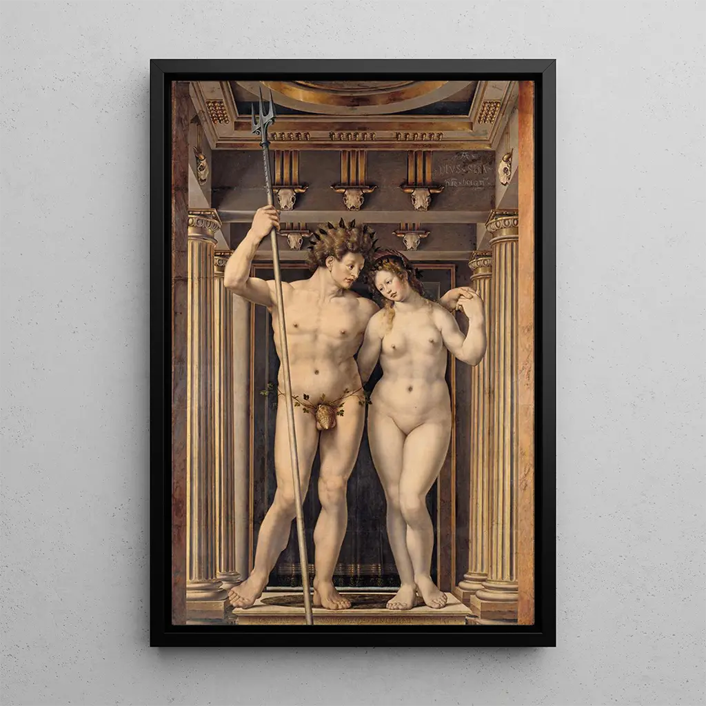 I detta ikoniska konsttryck fördjupar sig Jan Gossaert i en mytologisk värld där Neptune, havsguden, och Amphitrite, hans gudinnelika maka, flätas samman i en harmonisk dans. De livfulla färgerna på vattnet, himlen och figurerna skapar en atmosfär som är både lugn och dynamisk. Gossaerts teknik, som kombinerar olja och noggranna detaljer, ger liv åt varje element, från böljande vågor till de delikata uttrycken hos protagonisterna. Detta konsttryck, en sann hyllning till naturens skönhet och kraft, inbjuder betraktaren att fördjupa sig i en värld där det gudomliga möter det jordiska.