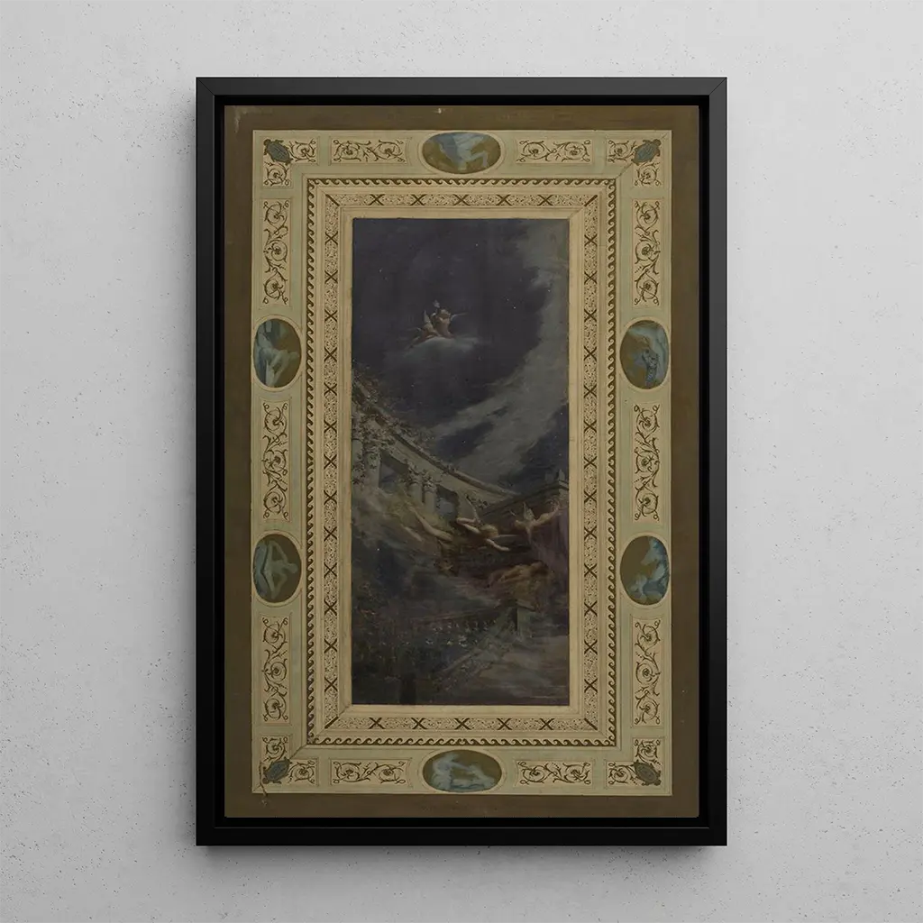 I "Psyché levererar kärlek" förflyttar Édouard Michel Lanon oss till hjärtat av en fascinerande mytologisk berättelse. Detta konsttryck, rikt på symbolism, illustrerar ögonblicket då Psyché, en ikonisk figur för skönhet och kärlek, frigör sig från tvivlets bojor för att omfamna sitt öde. De livfulla färgerna och de flytande formerna skapar en atmosfär som är både drömsk och dramatisk, medan de delikata detaljerna i figurerna fångar intensiteten i känslorna. Detta konsttryck inbjuder till reflektion över kärlek, skönhet och själens sökande, och erbjuder en unik visuell och andlig upplevelse.